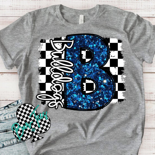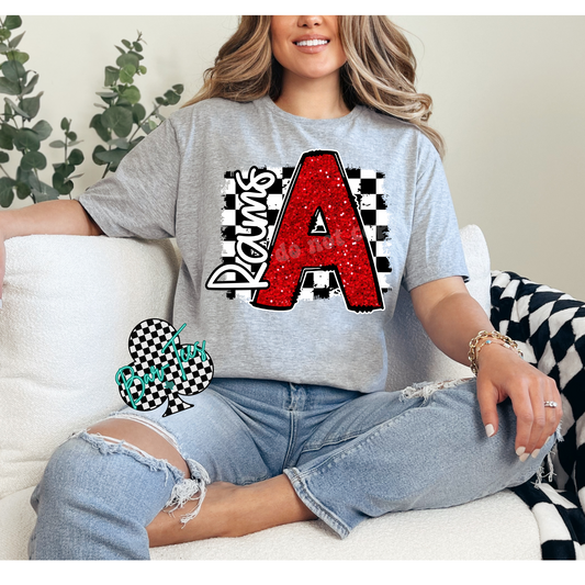 Custom Checkerd Faux Glitter Mascot Tee