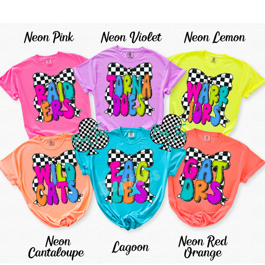 Youth Preppy Neon Checkered Mascot Tees/Sweatshirts