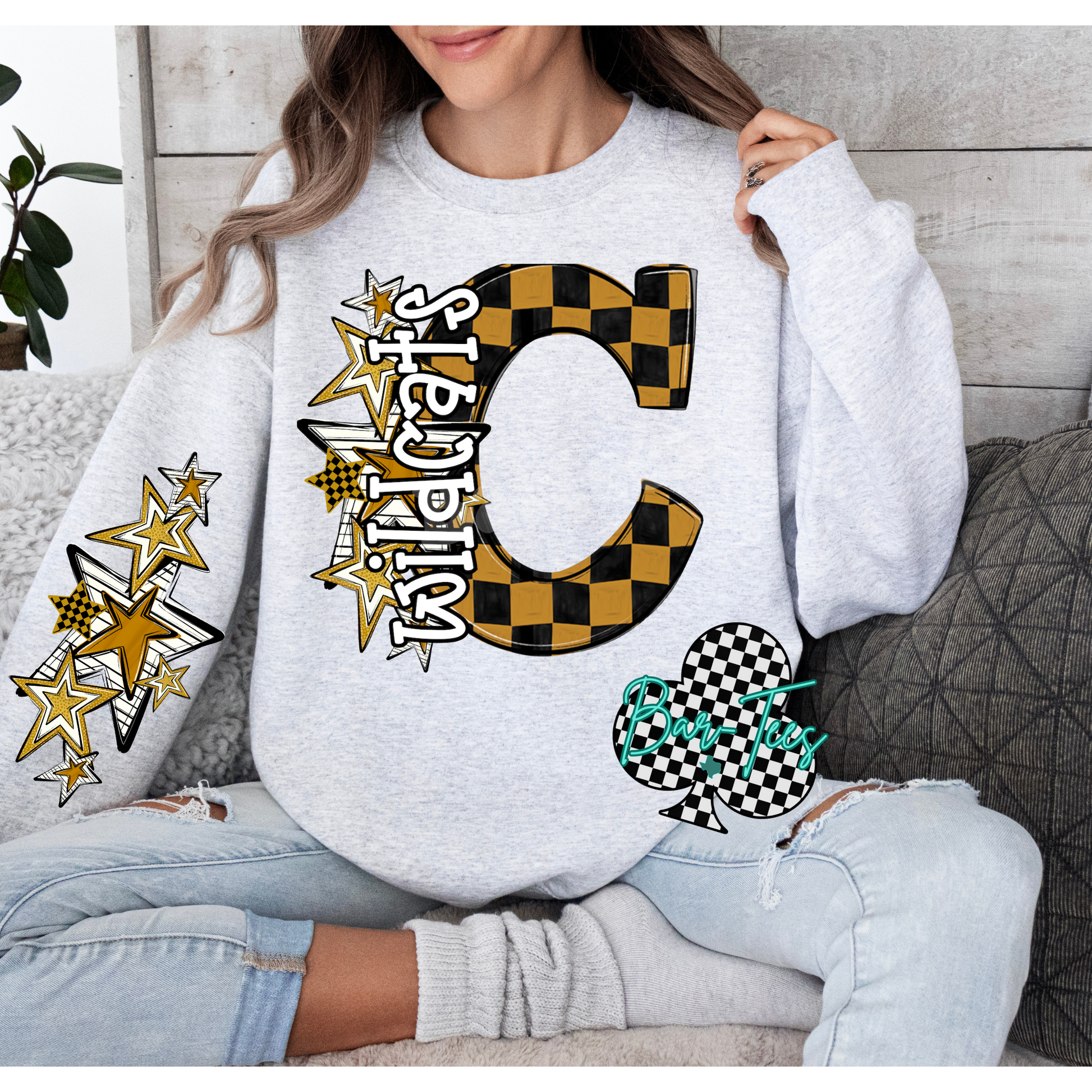 Canadian WILDCATS Custom Checkered Mascot Sweatshirt w/ sleeve design