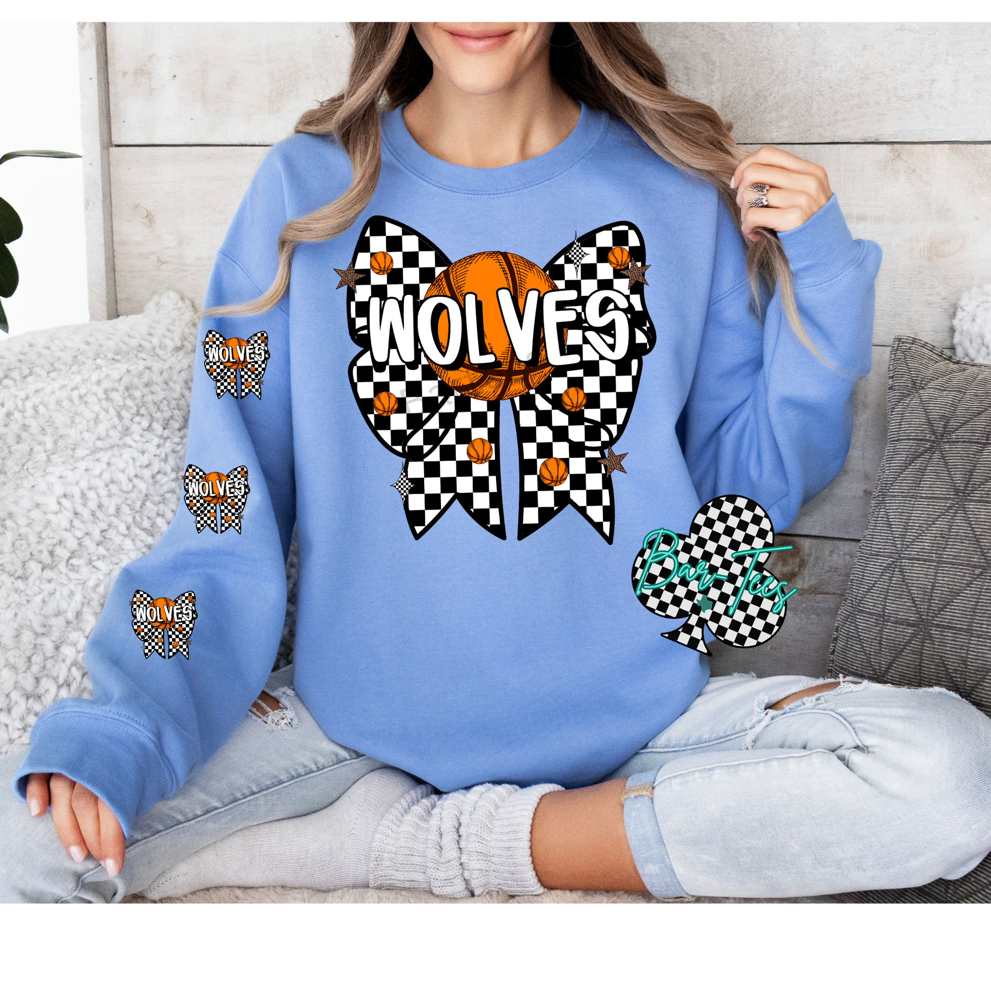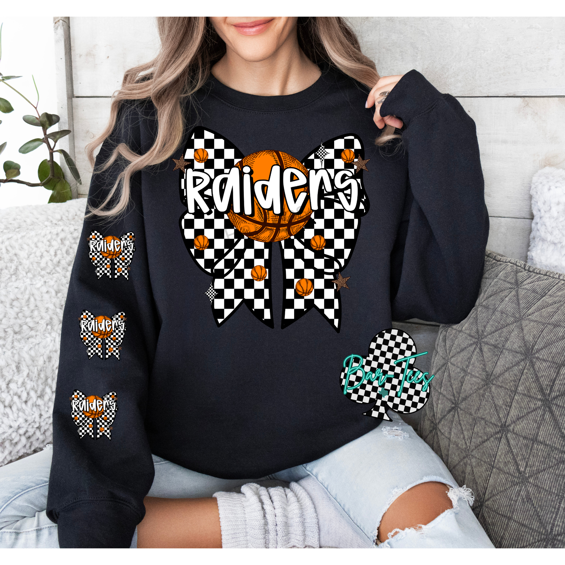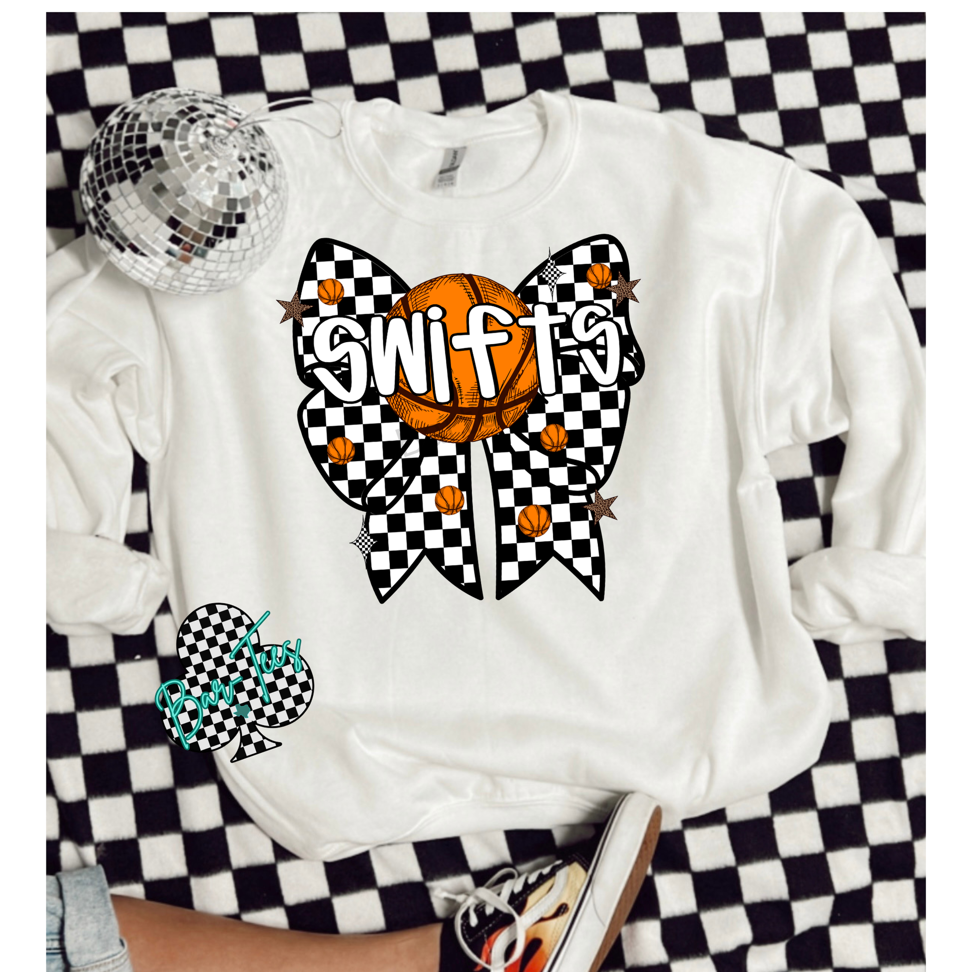 Checkered Basketball Bow tee/sweatshirt