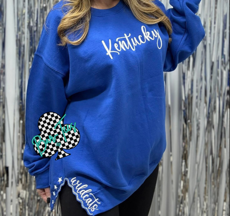 Pick your wording for the front and side slits also! Pick your sweatshirt color!