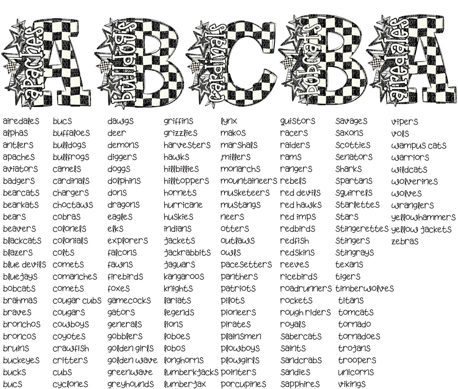 Logan Longhorns Black & White Checkered Mascot Sweatshirt or tee (can add sleeve design)