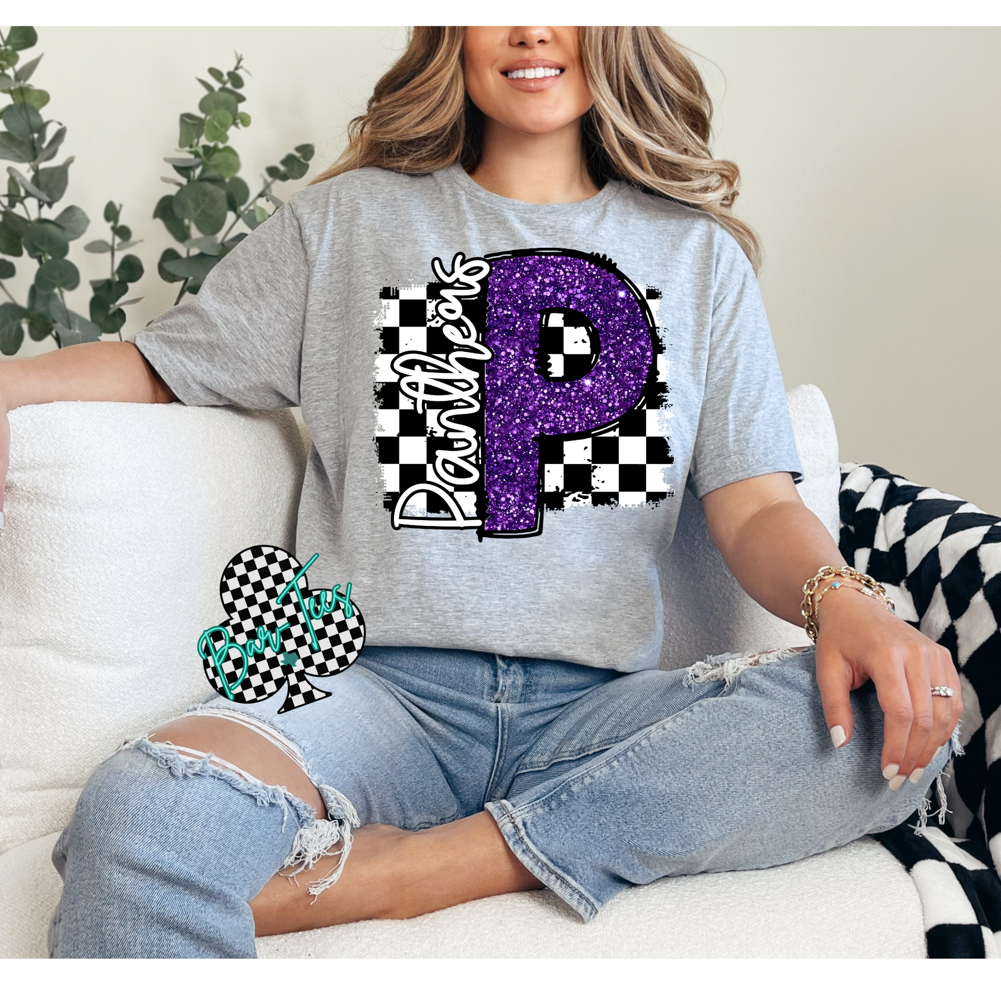 Panhandle Panthers Checkerd Faux Glitter Mascot Tee