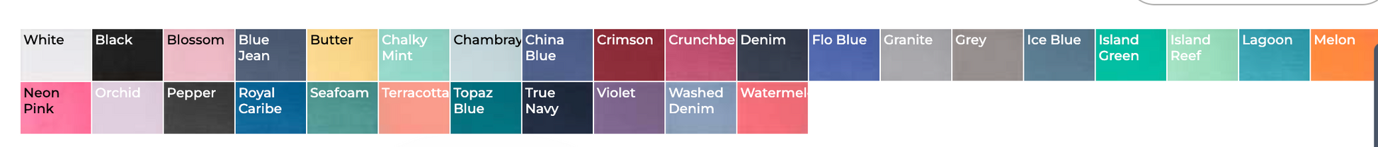 See color chart below! Please make sure you are using the correct color chart for youth and adults.